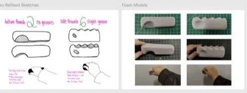 I (with the help of my amazing team Lenique Louis, Lucy Bell, and Victoria Huske) redesigned the Addi Circular Knitting Machine Hand Crank to address discomfort for users who enjoy knitting in their free time. We wanted to create a design that maintains the user's wrist in a neutral position, preventing cramping and discomfort during extended use. We incorporated a thumb hold on the side to support a natural grip and maintain wrist neutrality. The design also features a single-finger groove, which accommodates various hand sizes without limiting comfort. This ergonomic modification enhances grip stability and significantly increases comfort, offering a more intuitive and supportive hold for long knitting sessions.